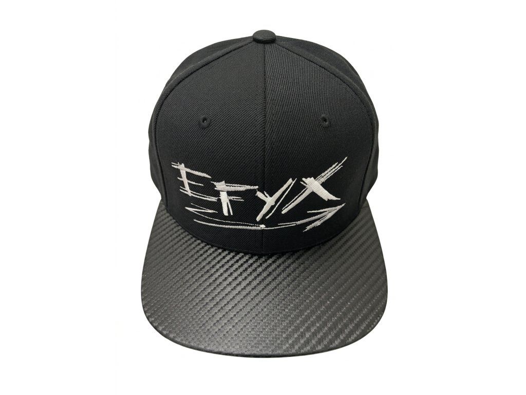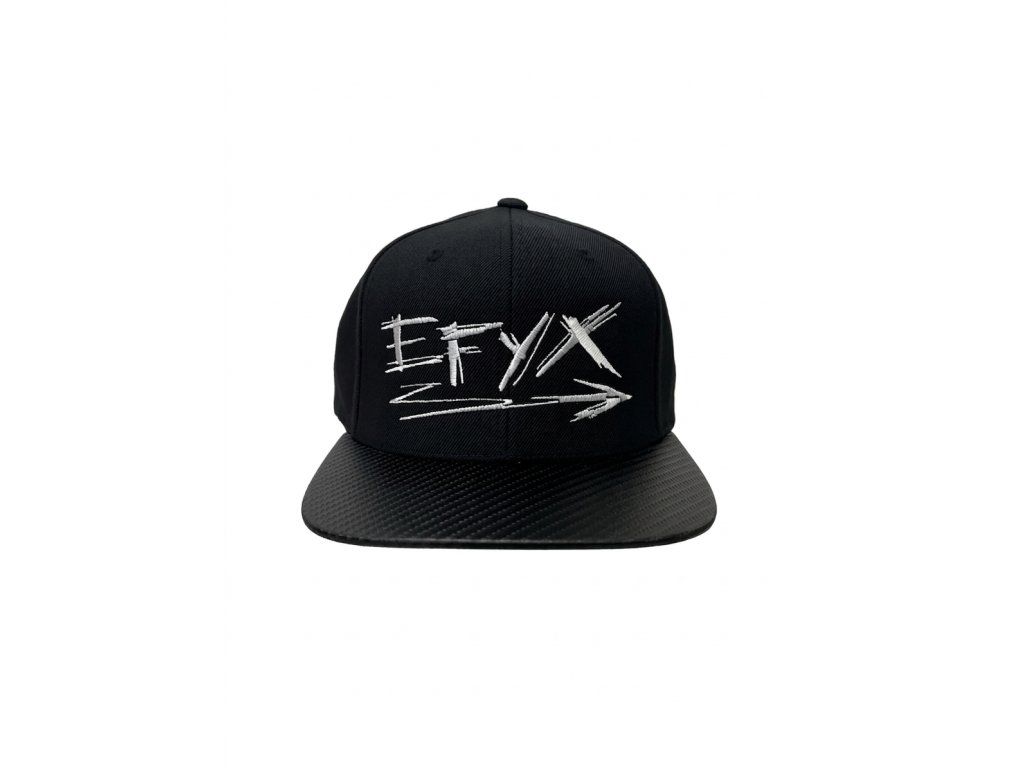 All-black streetwear esence. Pevná konstrukce, rovný kšilt s carbonovým potahem a masivní bílá výšivka EFYX. Žádné kompromisy, jen čistý styl.
