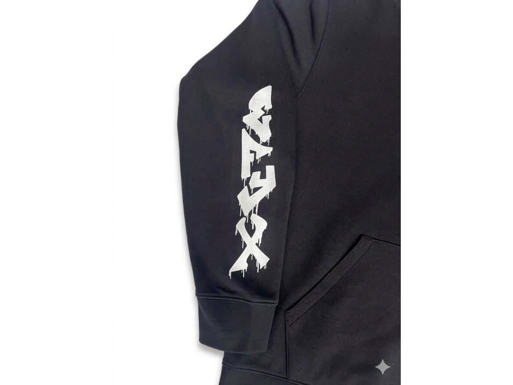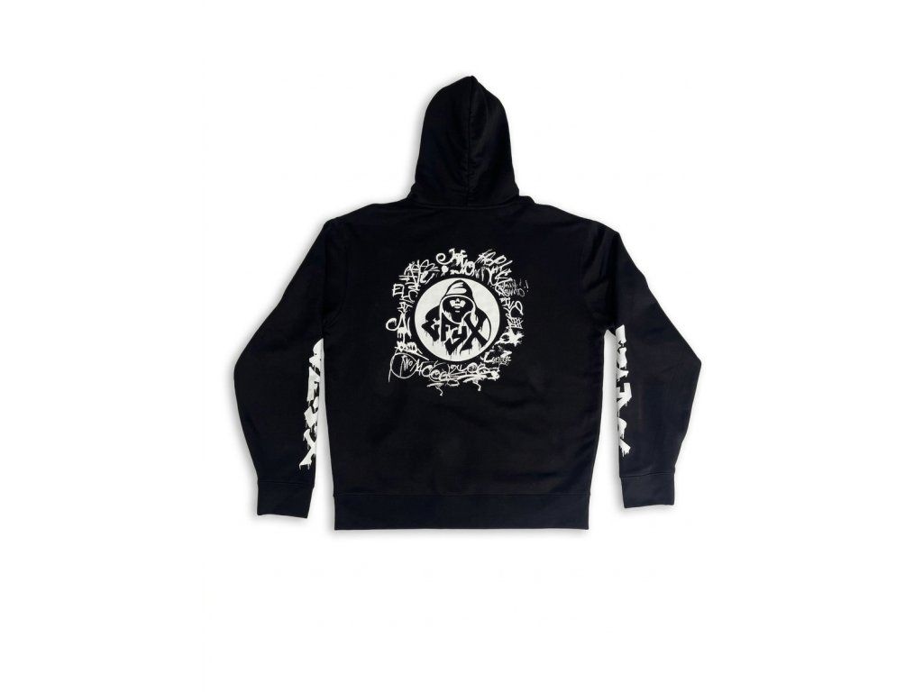 Tohle není jen mikina, to je chodící galerie tvýho postoje. Decentní bílé logo na prsou je jen začátek. Skutečná show začíná na rukávech s vertikálními "dripping" tagy a vrcholí na zádech. Masivní kruhový design s ikonou postavy v kapuci a surovým kruhem graffiti tagů dává jasně najevo, odkud přicházíš. Poctivá bavlna a perfektní fit tě podrží v noci v ulicích i přes den v chillu.