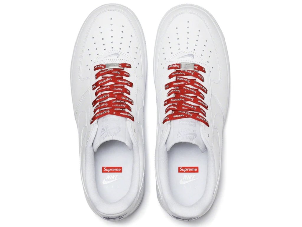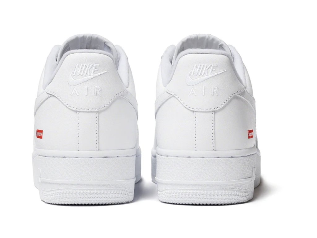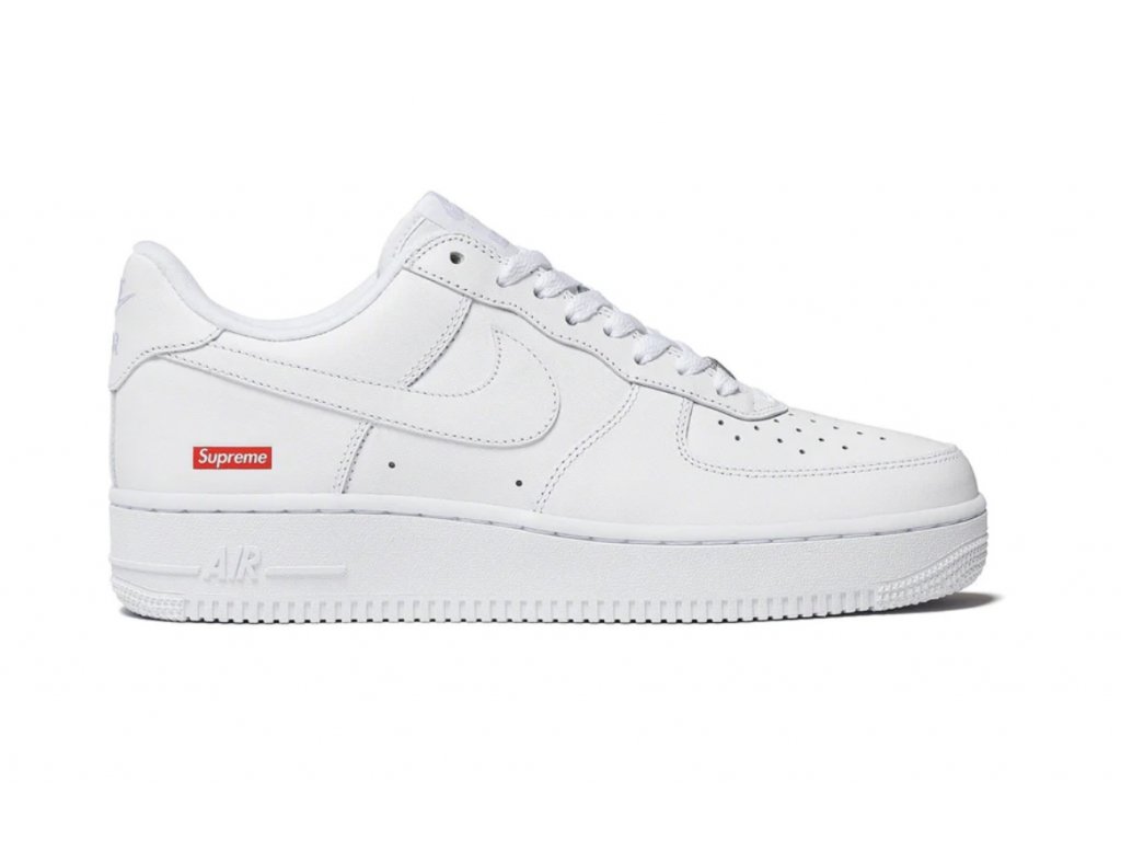 Tento Air Force 1 Low se skládá z celobílého koženého svršku s odpovídajícími podrážkami a detaily. Design doplňuje červené logo Supreme Box umístěné na vnější patě. Tyto tenisky byly vydány v březnu 2020.