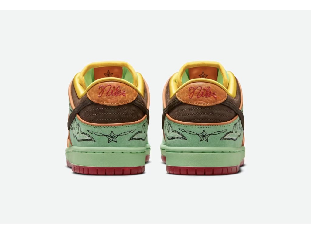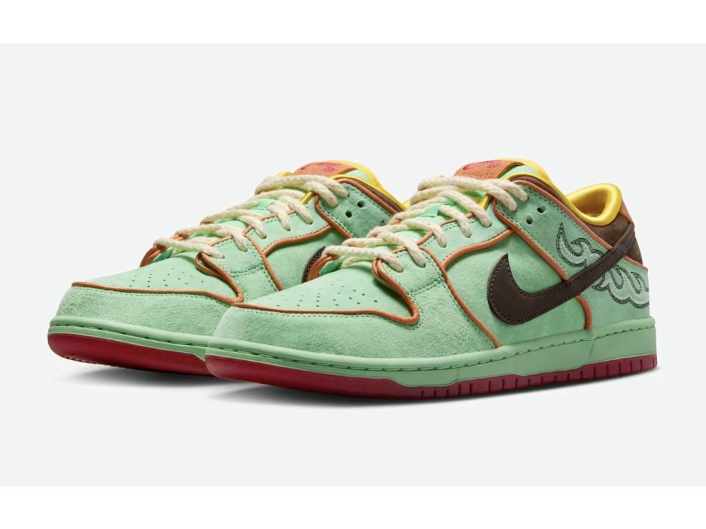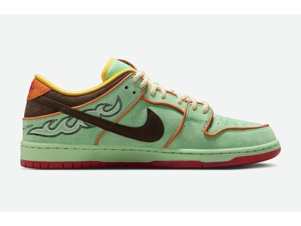 Nike SB Dunk Low Rodeo Tourmaline přináší neotřelý a poutavý design inspirovaný rodeo estetikou a výraznými barvami drahého kamene turmalínu. Tenisky kombinují texturovaný semiš a kožené panely v odstínech tyrkysové, fialové a hnědé, doplněné o kontrastní detaily a klasickou gumovou podrážku.