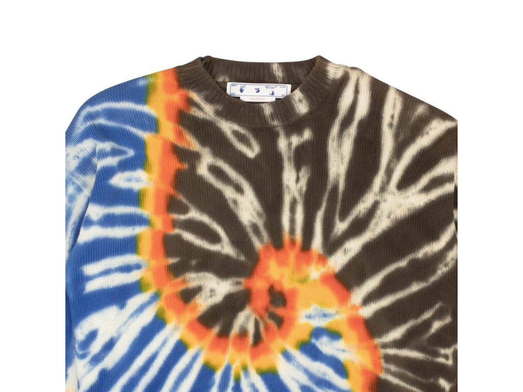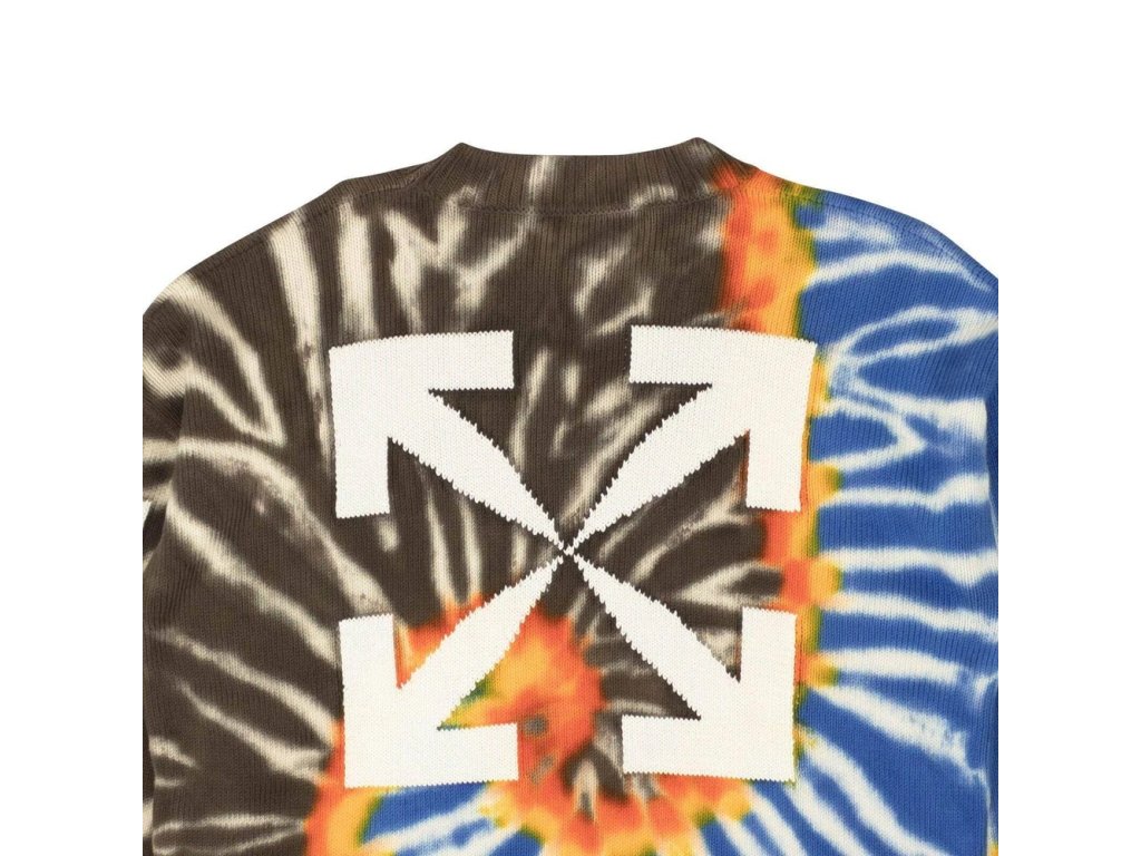 Diag Tie Dye Knit Crewneck od Off-White je vyroben z pleteniny s charakteristickou úhlopříčkou a šípovým detailem vzadu.
