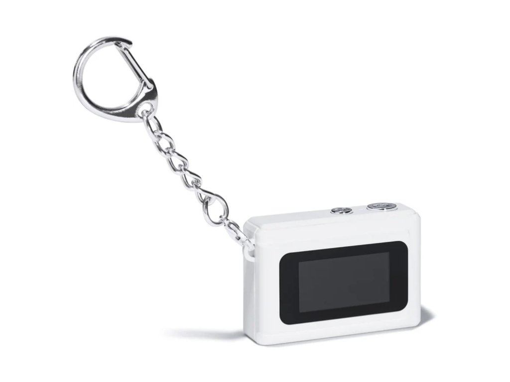 Ultrakompaktní přívěsek na klíče s digitálním fotoaparátem s tištěným logem. Součástí balení je 32GB TF karta a kabel USB-C. Součástí je šňůrka na krk a klíčenka s klipem. 4,9 cm x 3,14 cm x 3,1 cm.