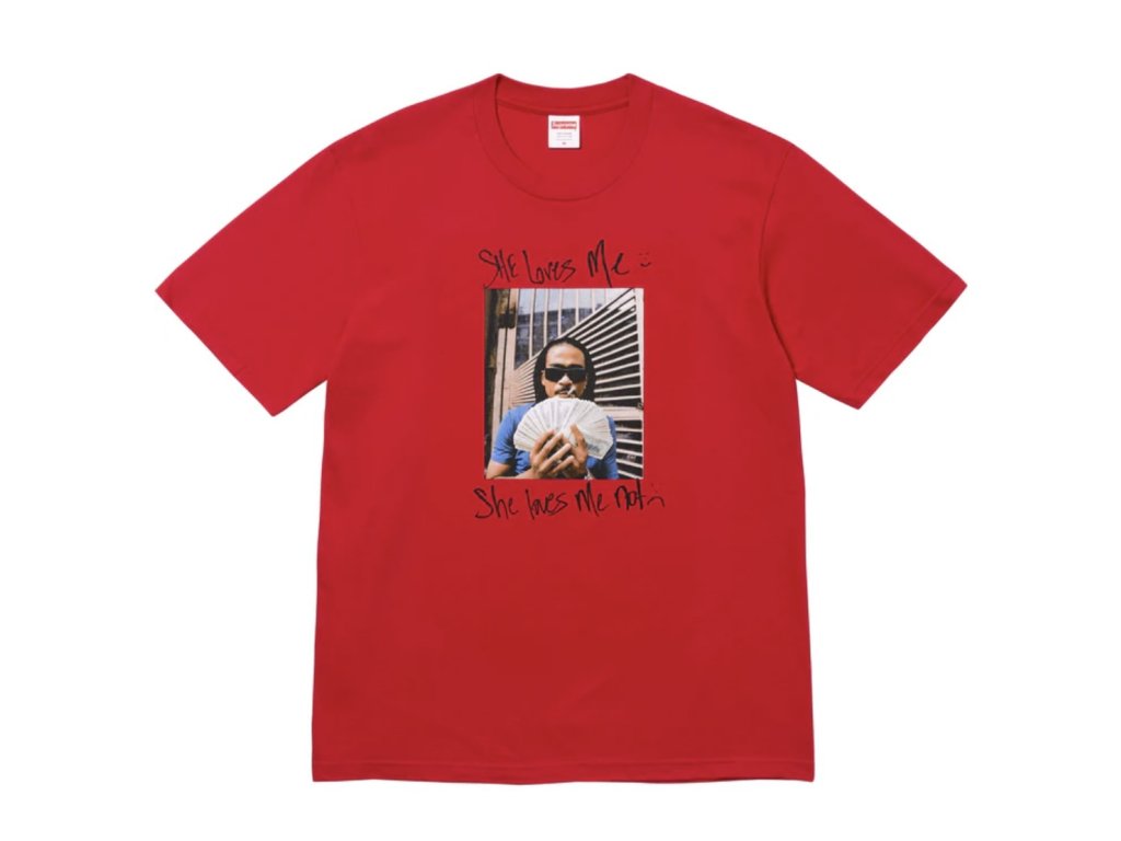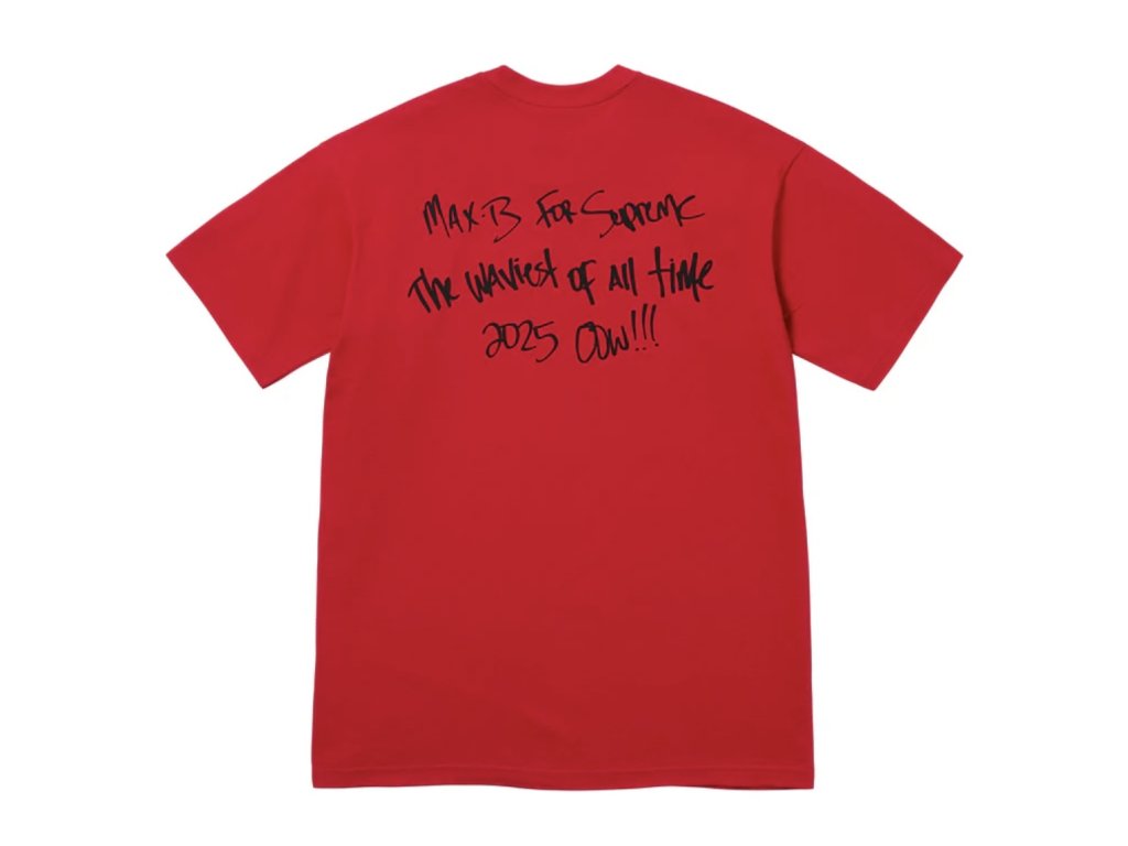 Klasické celobavlněné tričko Supreme s tištěnou grafikou na přední a zadní straně.