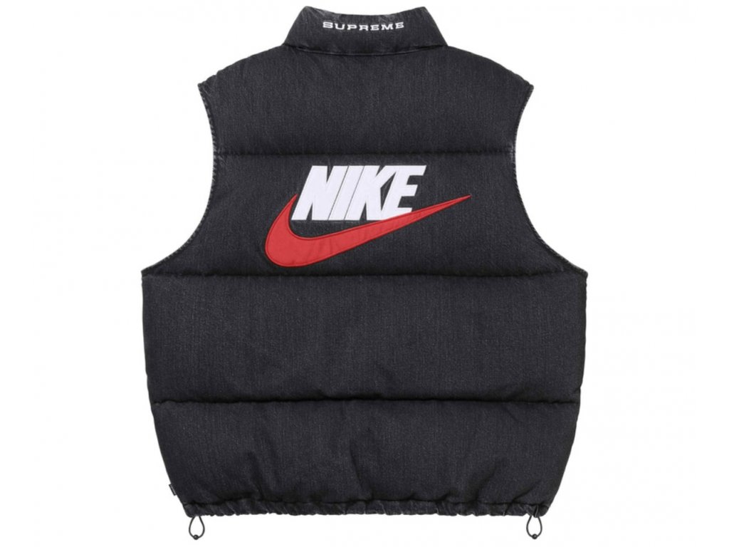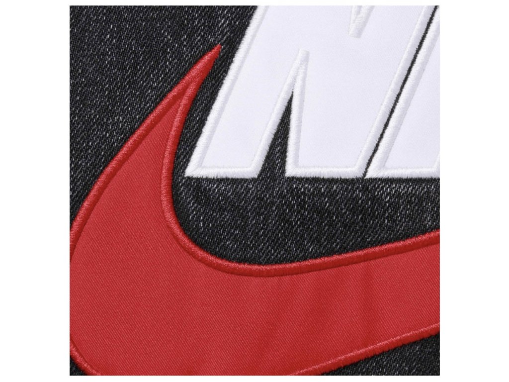 Celobavlněná džínovina s vnitřními prošívanými přepážkami a taftovou podšívkou. Celé zapínání na zip s lemovanými kapsami na zip vepředu a vnitřní náprsní kapsou. Vnitřní elastická šňůrka na lemu. Vyšívaná loga na límci a zadním krku. Aplikace loga kepru vzadu. Vyrobeno exkluzivně pro Supreme.