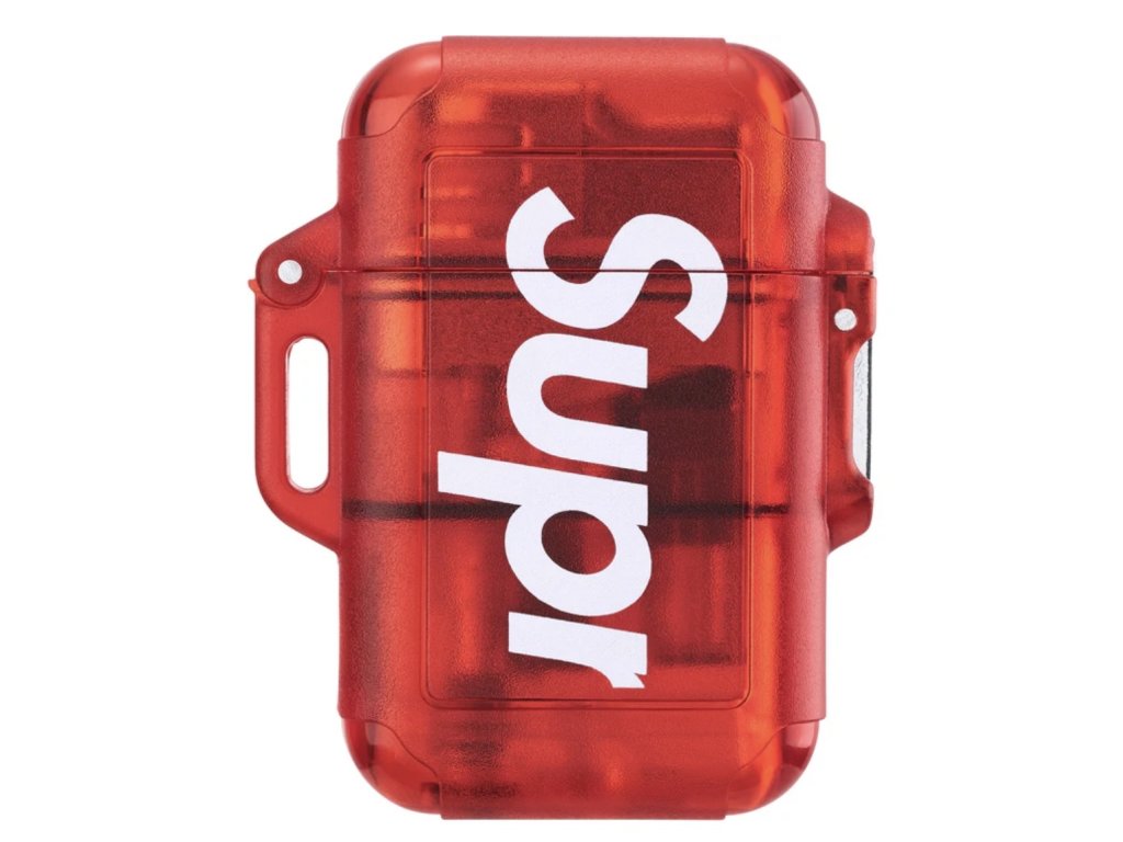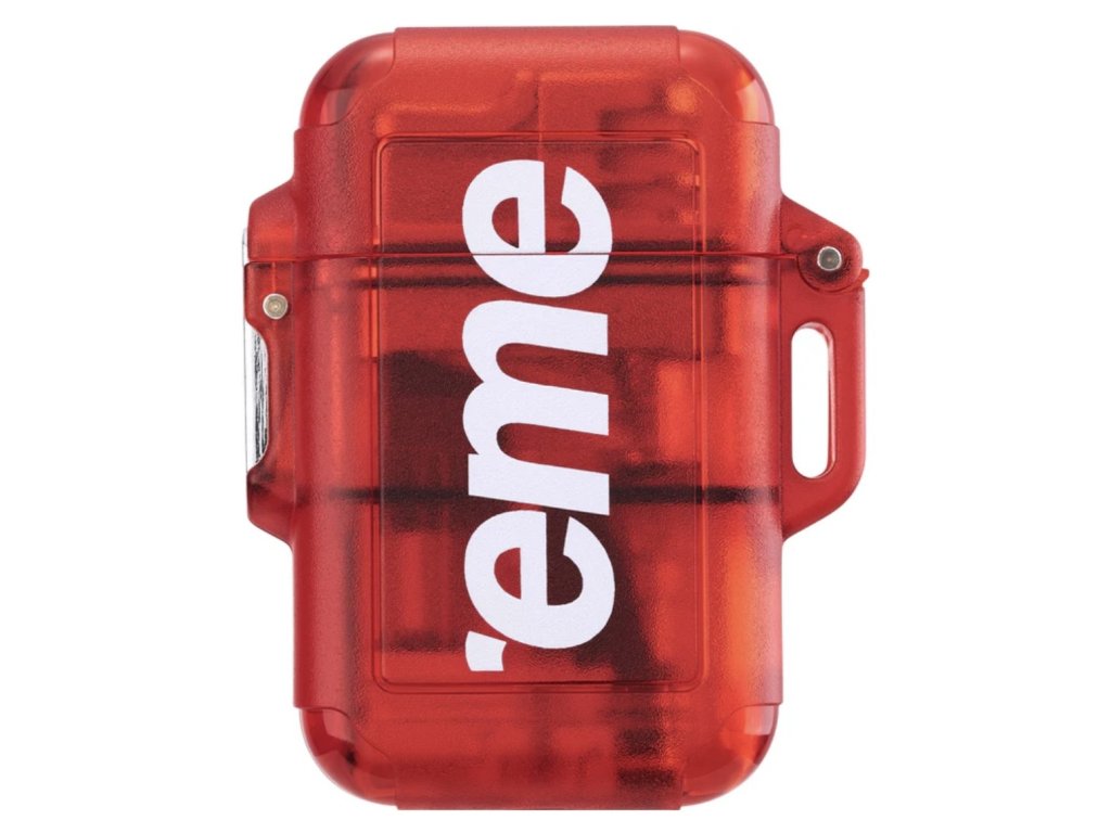 Voděodolný, větruodolný zapalovač s tištěným logem. 5,4 cm x 4,1 cm x 1,8 cm. Vyrobeno exkluzivně pro Supreme.