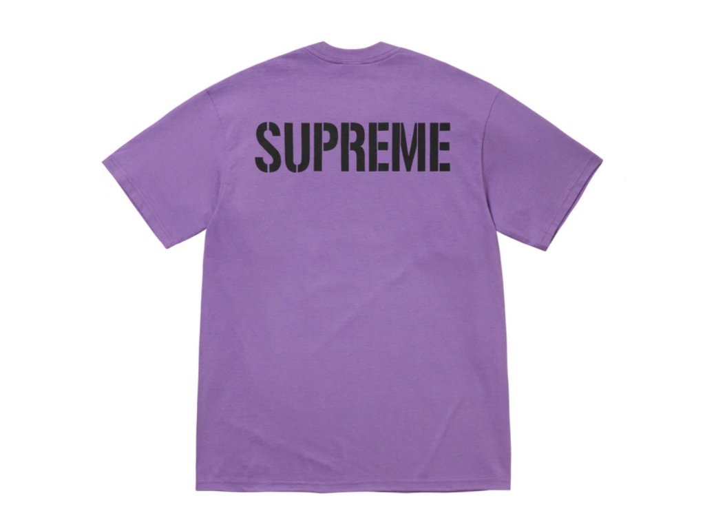 Celobavlněné klasické tričko Supreme s potiskem vpředu a potiskem loga vzadu. Originální kresba od Mylese Underwooda.